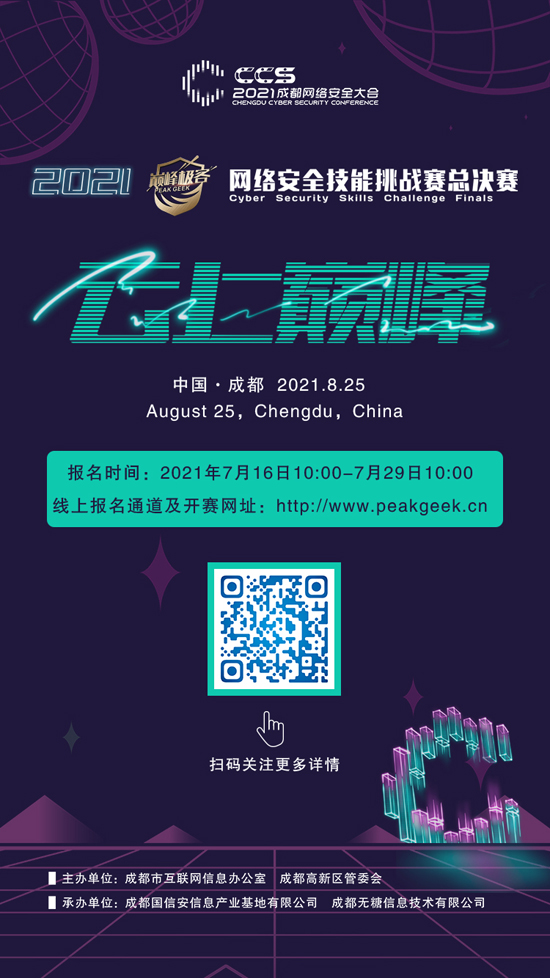 7月19日,記者從成都高新區獲悉,2021“巔峰極客”網絡安全技能挑戰賽系列活動將在成都高新區拉開帷幕。目前,比賽已正式啟動報名。線上報名通道為http://www.peakgeek.cn。國家關鍵基礎設施單位、重要行業部門、科研機構、高等院校、信息安全企業、滲透測試團隊、互聯網企業等均可報名參加。