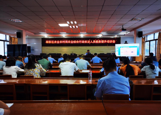 為規范農業行政執法行為,不斷提升農業行政執法人員的辦案能力和水平,5月15日下午,宜賓市翠屏區農業農村局召集了全體執法人員共計40余人,舉辦了2023年度上半年行政執法人員培訓會暨案件評查會,會議由局黨委委員、機關黨委書記、農業綜合行政執法大隊常務副大隊長郭平主持。