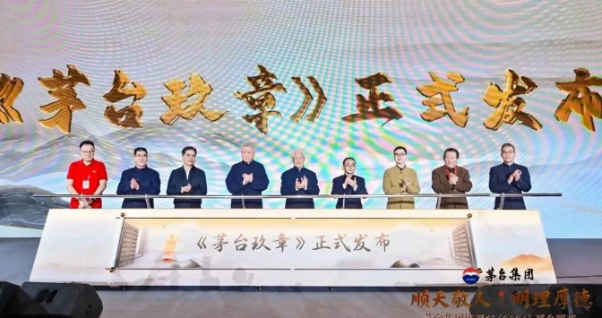 當天,《茅臺玖章》——茅臺企業文化手冊正式發布。茅臺文化,順天敬人,明理厚德,以敬畏與感恩之心弘揚中華傳統文化,順應自然法則,守正創新,久久為功,香飄世界。茅臺新一年的釀造之旅,在《茅臺玖章》“順天敬人、明理厚德”的理念中啟程。