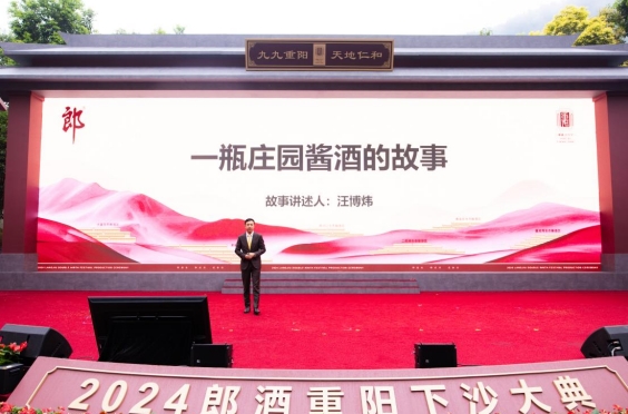 現(xiàn)場(chǎng)郎酒股份總經(jīng)理汪博煒化身成了一位故事講述人,娓娓道來(lái)一瓶莊園醬酒的故事。