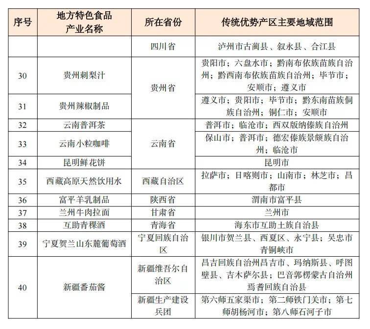據了解,2023年3月16日,工業和信息化部等十一部門關于培育傳統優勢食品產區 和地方特色食品產業的指導意見;2024年10月8日,工業和信息化部發布“關于開展傳統優勢食品產區和地方特色食品產業重點培育工作的通知”,落實指導各地組織開展傳統優勢食品產區和地方特色食品產業重點培育工作。