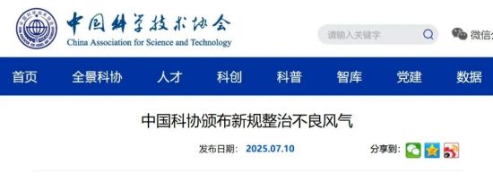 中國科協(xié)7月9日向社會公布最新出臺的有關規(guī)定,旨在加強其業(yè)務主管的科技社團作風學風建設,整治當前科技社團所舉辦活動中的不良風氣。