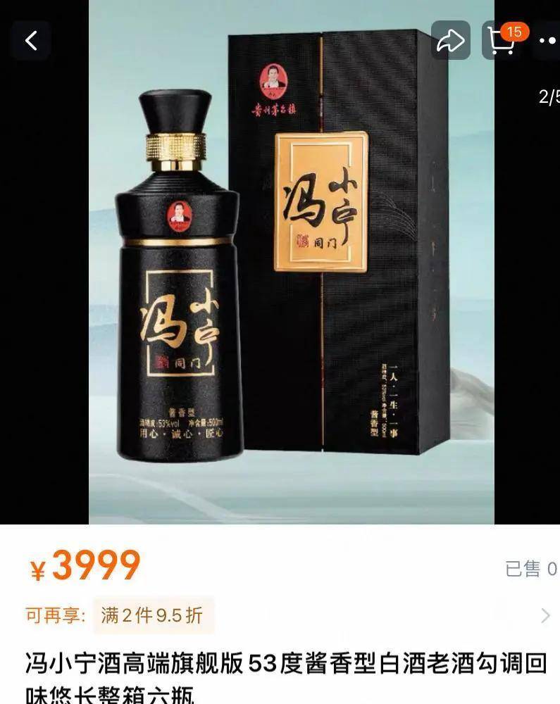 搜索發(fā)現(xiàn),在電商網(wǎng)站上有不少打著“馮小寧”名字宣傳的醬酒,比如“貴州馮小寧傳釀大師醬香型白酒”“馮小寧親筆簽名原茅臺(tái)特制酒廠特制出品”“賴家慶馮小寧大師臻制白酒”“四方九品馮小寧大師傳承53度醬香型白酒”等。有的白酒直接命名“馮小寧”,但在不起眼處有“同門”兩個(gè)小字。