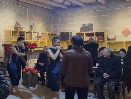 儀式的最后環節是兩位身著傳統服飾的釀酒工匠抬上一壇由梁懷清大師親自勾調的佳釀,由梁懷清大師親手敬奉給李庭芳先生,以最能表達釀酒人情感的方式,感謝李庭芳先生當年親自選定批準其師從范玉平先生學習勾調的知遇之恩、伯樂之情。