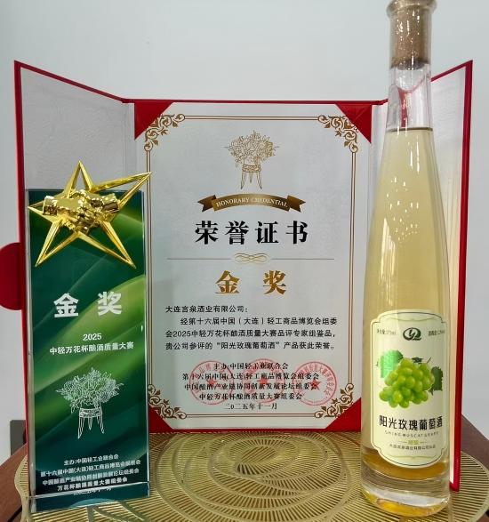 在本屆博覽會首次舉辦的2025中輕萬花杯釀酒質量大賽中,大連言泉酒業有限公司旗下產品“大櫻桃酒”、“陽光玫瑰葡萄酒”憑借卓越品質斬獲“大金獎”、“金獎”雙項大獎。